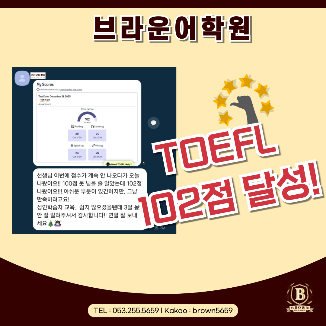 대구 토플 준비 브라운어학원 TOEFL 102점 성공 스토리