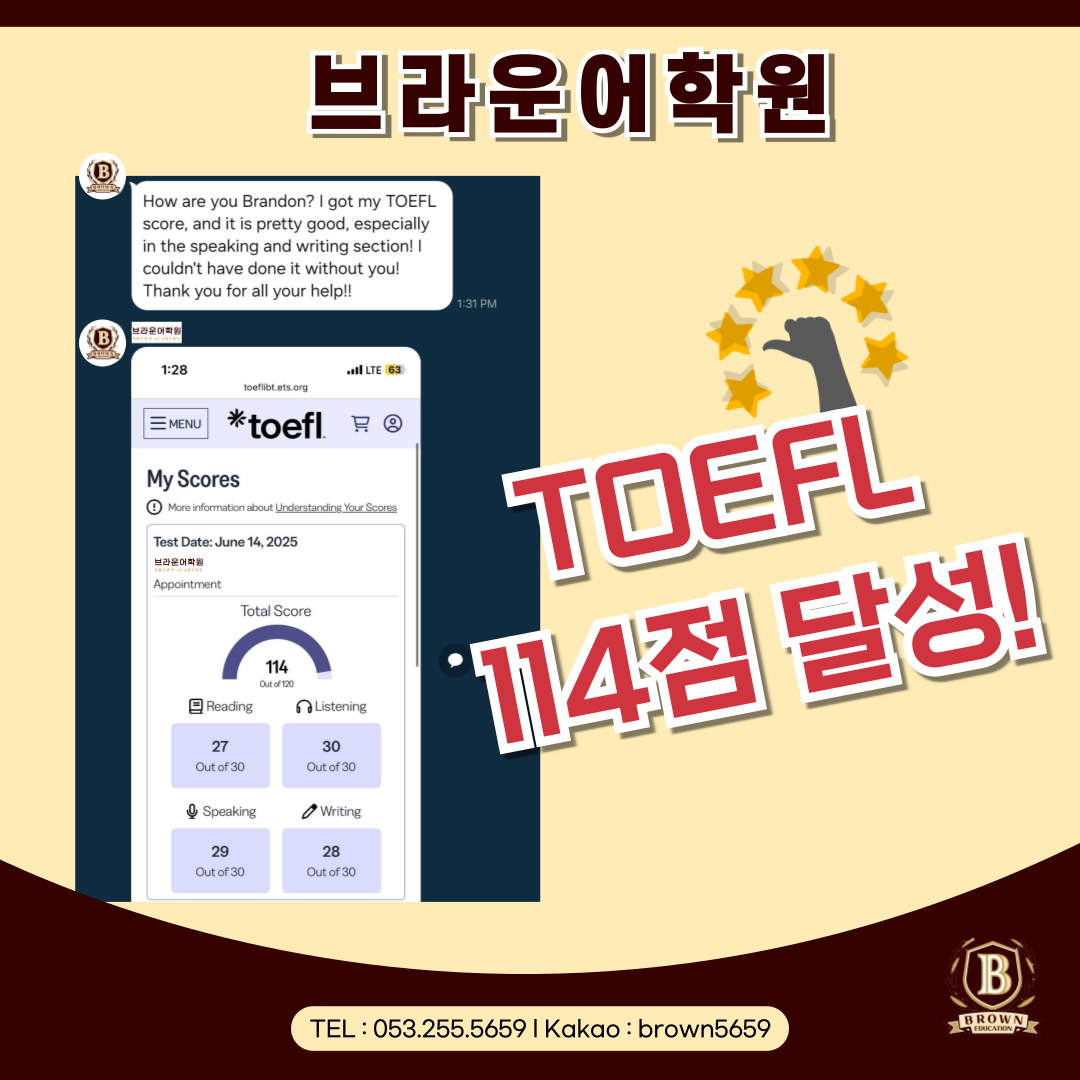 대구 토플 학원에서 TOEFL 114점 달성한 후기
